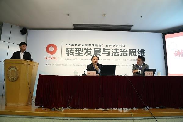 4月27日,我校2017年第三次全校校院两级中心组学习报告会在行政楼报告厅举行,本场报告会是东方讲坛·法学与法治国家建构演讲季第六讲,主题为“转型社会与法制思维”,邀请到了上海市人民政府法制办公室刘平副主任、上海交通大学程金华教授做报告。报告会由校党委常委、副校长欧阳华主持,全校校院两级中心组成员,副处及以上干部,部分研究生和本科生代表以及辅导员代表,还有部分社会听众一同聆听了本场报告会。